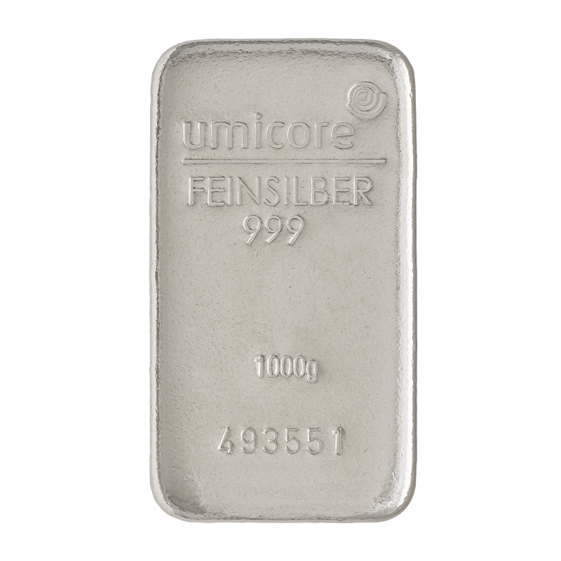 1 kg stříbrný slitek Umicore, Litý